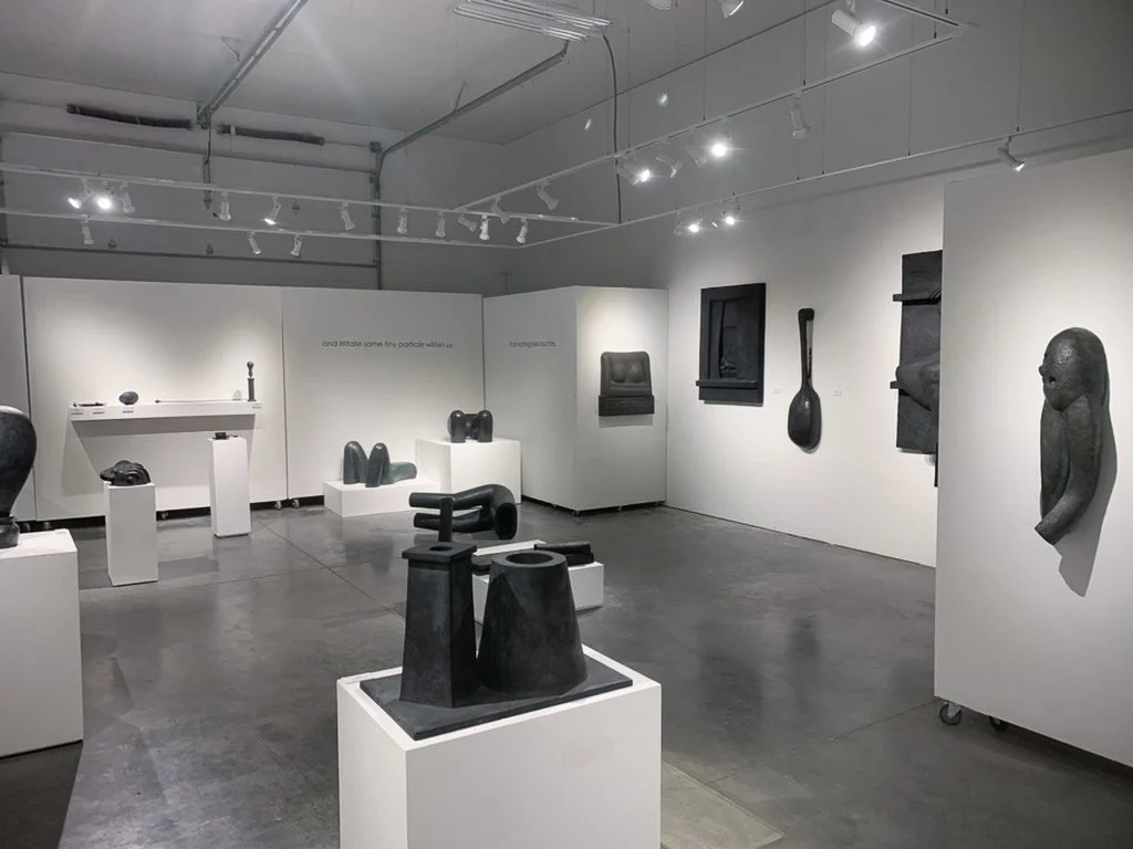 An overview of the Paul Harris and Marguerite Kirk Gallery showing walls, pedestals, and lighting by CPAS
